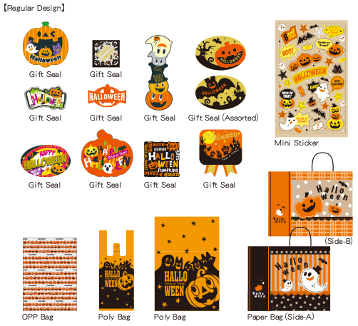 ハロウィン柄の紙袋・包装紙・化成品・ポスター・